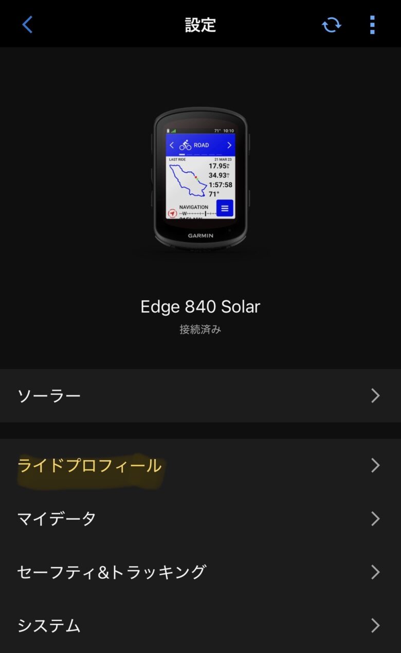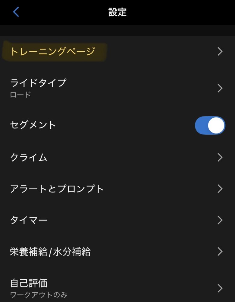 これはGarmin Edge本体からだと「ライドプロフィール」→「トレーニングページ」に進み設定していくのですが、おすすめは「スマートホンアプリ」を使用することです!